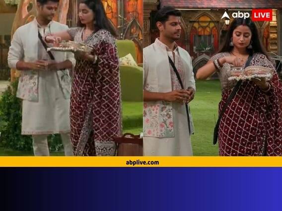 Bigg Boss 17 Aishwarya Sharma: देशभर में बड़ी धूमधाम के साथ 1 नवंबर को करवा चौथ का त्योहार मनाया गया. सुहागिन महिलाओं ने इस दौरान व्रत रखकर चांद का दीदार किया और अपने पति के लंबी उम्र की कामना की. 'बिग बॉस 17' में भी ऐश्वर्या शर्मा और नील भट्ट ने करवा चौथ का पर्व मनाया.