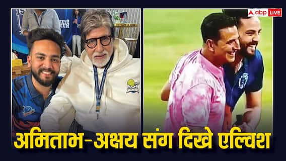 Elvish Yadav Pic with Amitabh Bachchan: इंडियन स्ट्रीट प्रीमियर लीग की 6 मार्च से शुरुआत हुई. इस दौरान बॉलीवुड और स्पोर्ट्स जगत से कई बड़े स्टार्स नजर आए. बिग बॉस ओटीटी 2 के विनर एल्विश यादव भी यहां पहुंचे थे. एल्विश ने सोशल मीडिया पर इसकी फोटोज शेयर की हैं. एल्विश फील्ड पर भी नजर आए. उन्होंने अक्षय कुमार के साथ कैंडिड मोमेंट शेयर किए.