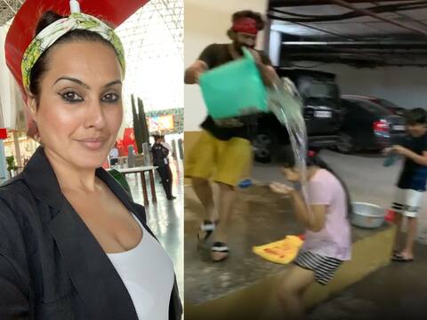 इस वीडियो में, काम्या के पति और दो बच्चे पार्किंग एरिया में पानी से खेलते हुए नजर आ रहे हैं. इसमें शलभ और दोनों बच्चे पानी को एक-दूसरे पर फेंक रहे हैं. यह उस वक्त हुआ जब शलभ अपनी कार धो रहे थे. शलभ बच्चों पर एक छोटे में रखा पानी डाल रहे हैं और बच्चे नाच रहे हैं. काम्या इस पल को अपने कैमरे में कैद करती हैं और सोशल मीडिया पर शेयर करती हैं. इस वीडियो को शेयर करते हुए उन्होंनेलिखा,'लॉकडाउन में बच्चों को अगर रखना है बिजी और एंटरटेन, उनसे अपनी गाड़ी धुलवा लो. शलभ भी क्यों बाकी रह जाए, वैसे यहां गाड़ी से ज्यादा बच्चे धुल रहे हैं.'
