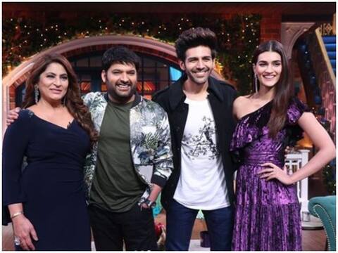 कपिल शर्मा के शो 'द कपिल शर्मा शो' पर अभिनेता कार्तिक आर्यन और कृति सेनन पहुंचे. ये दोनों यहां पर अपनी फिल्म 'लुका छुपी' को प्रमोट करने के लिए पहुंचे हैं. सोनी टीवी ने हाल ही में शो से जुड़े हुए कुछ वीडियो सोशल मीडिया पर शेयर किए हैं. इन वीडियोज़ में कार्तिक और कृति, कपिल के घर में धमाल मचाते हुए नजर आ रहे हैं.
