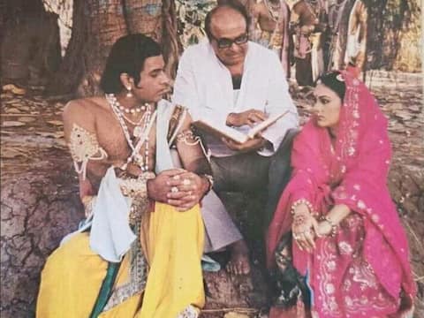 रामानंद सागर फोटो में अरुण और दीपिका दोनों को कुछ समझा रहे हैं. उनके हाथ में एक पुस्तक भी है जिसके माध्यम से वह उन्हें कुछ महत्वपूर्ण जानकारी दे रहे हैं. इस फोटो को शेयर करते हुए दीपिका ने बताया है कि 'बिहाइंड द कैमरा' कुछ इस तरह हुआ करता था.' उन्होंने बताया है कि जब कोई शूटिंग नहीं होती थी तो शो के कलाकार क्या करते थे. यह फोटो सोशल मीडिया पर वायरल हो गई है.