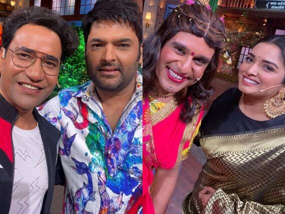 Bhojpuri Stars on The Kapil Sharma Show: 'द कपिल शर्मा शो' के नए एपिसोड में भोजपुरी इंडस्ट्री के कई कलाकार गर्दा उड़ाने आ रहे हैं. कपिल शर्मा शो (Kapil Sharma Show) पर एंटरटेनमेंट का डबल धमाका देखने को मिलने वाला है. कपिल शर्मा शो पर भोजपुरी स्टार्स (Bhojpuri Actors) वाले एपिसोड का अभी प्रोमो सामने नहीं आया है, लेकिन उससे पहले कई तस्वीरें सामने आ गई हैं. तस्वीरों में साफ देखा जा सकता है कि भोजपुरी कलाकार दिनेश लाल यादव (Dinesh Lal Yadav), आम्रपाली दुबे (Aamrapali Dubey) और रानी चटर्जी (Rani Chatterjee) एंटरटेनमेंट का तड़का लगाने कपिल शर्मा के शो पर आ रहे हैं.