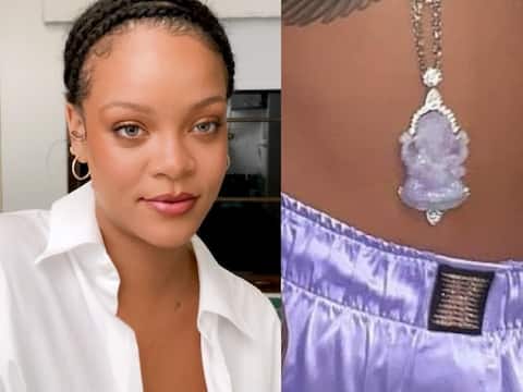 रिहाना ने पिंक नाइट शॉर्ट्स पहना हुआ है. उन्होंने डायमंड का ब्रेसलेट, नेकपीस और बड़े-बड़े ईयररिंग्स पहना हुआ है. ट्विटर यूजर्स ने उनके नेकलैस में लगे गणपति पेंडेंट को भी नोटिस किया. गणपति पेंडेंट में डायमंड भी जड़ा हुआ है. टॉपलेस बॉडी पर गणेश पेंडेंट देखकर हिंदू धर्म में विश्वास करने वाले लोग उनपर रिहाना की आलोचना कर रहे हैं.