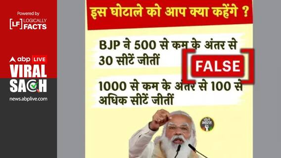 भारत के चुनाव आयोग के डेटा से साफ़ हो जाता है कि बीजेपी उम्मीदवार की जीत का सबसे छोटा अंतर 1,587 था, जो 1,000 या 500 से कम अंतर से जीत के दावों को ग़लत साबित करता है. आधिकारिक डेटा ऑनलाइन किए गए दावों का खंडन करता है.