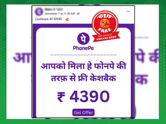 नई दिल्ली (विश्वास न्यूज). सोशल मीडिया पर फोन पे के नाम से कैशबैक जीतने की एक पोस्ट वायरल हो रही है. दावा किया जा रहा है कि कूपन पर स्क्रैच करने पर 4390 रुपए का कैशबैक जीता जा सकता है. पोस्ट में एक लिंक को भी शेयर किया जा रहा है.