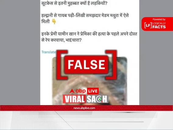 दावा क्या है? सोशल मीडिया पर एक युवती के शव की तस्वीर को सांप्रदायिक रंग देकर शेयर किया जा रहा है. यूज़र्स का दावा है कि तस्वीर में 'लव जिहाद' की शिकार एक युवती है, जो उत्तराखंड के हल्द्वानी से लापता हो गई थी. आगे कहा गया है कि उसके मुस्लिम प्रेमी ने अपने दोस्तों के साथ मिलकर उसके साथ रेप किया और फिर उसकी हत्या कर दी.