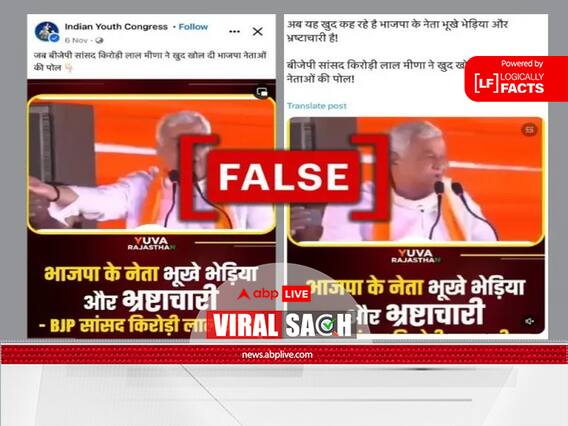 हालांकि, यह वीडियो किरोड़ी लाल मीणा के भाषण के मूल वीडियो से काटा गया अंश है. वायरल वीडियो के लंबे वर्ज़न में वह राजस्थान के मुख्यमंत्री अशोक गहलोत के एक बयान का हवाला देकर अपनी बात रखते नज़र आ रहे हैं, न कि अपनी ही पार्टी बीजेपी के नेताओं को भूखे भेड़िये और भ्रष्ट बता रहे हैं.