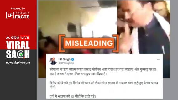 समाजवादी पार्टी के प्रवक्ता आईपी सिंह ने एक्स (पूर्व में ट्विटर) पर वीडियो पोस्ट करते हुए कैप्शन दिया, "कौशांबी में डिप्टी सीएम केशव प्रसाद मौर्य का भारी विरोध हर गली मोहल्ले और नुक्कड़ पर हो रहा है जनता ने इनका निकलना दुधर कर दिया है. विरोध को देखते हुए विनोद सोनकर को लेकर गेस्ट हाउस से तत्काल भाग खड़े हुए केशव प्रसाद मौर्य. यूपी में भाजपा को 10 सीटों के लाले पड़े." पोस्ट का आर्काइव वर्ज़न यहां देखें. ऐसे ही दावों के साथ शेयर किये गए अन्य पोस्ट यहां और यहां देखें.