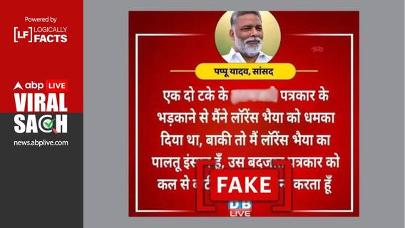 बिहार के पूर्णिया से सांसद पप्पू यादव को लेकर डिजिटल न्यूज़ चैनल डीबी लाइव का एक न्यूज़ ग्राफ़िक सोशल मीडिया पर शेयर किया जा रहा है, जिसमें दावा किया गया है कि पप्पू यादव ने गैंगस्टर लॉरेंस बिश्नोई के प्रति अपनी 'वफ़ादारी' ज़ाहिर की है.