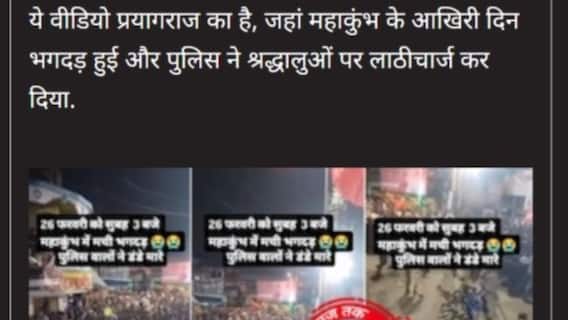 क्या महाकुंभ के आखिरी दिन, यानी 26 फरवरी को एक और भगदड़ हुई थी, जिसमें पुलिस वालों ने श्रद्धालुओं पर डंडे तक बरसा दिए? सोशल मीडिया पर एक वीडियो शेयर करते हुए लोग कुछ ऐसा ही बोल रहे हैं. वीडियो में पुलिसकर्मियों के साथ लोगों की भारी भीड़ किसी इलाके से निकल रही है. देखते ही देखते पुलिस लाठीचार्ज कर देती है और ये लोग चीखते-चिल्लाते हुए भागने लगते हैं.
