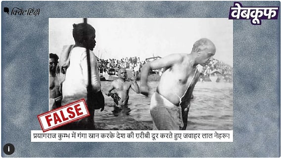 क्या यह दावा सही है ? नहीं, यह दावा सही नहीं है. इस तस्वीर में पंडित जवाहरलाल नेहरू प्रयागराज के कुंभ मेला में गंगा स्नान नहीं कर रहे हैं.
