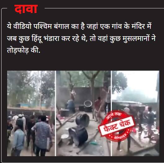 कई लोग इसे पश्चिम बंगाल की घटना बता रहे हैं. दावे के मुताबिक, पश्चिम बंगाल में किसी मंदिर में भंडारा किया जा रहा था, लेकिन वहां मुसलमानों ने घुसकर सब कुछ तहस-नहस कर दिया दिया.