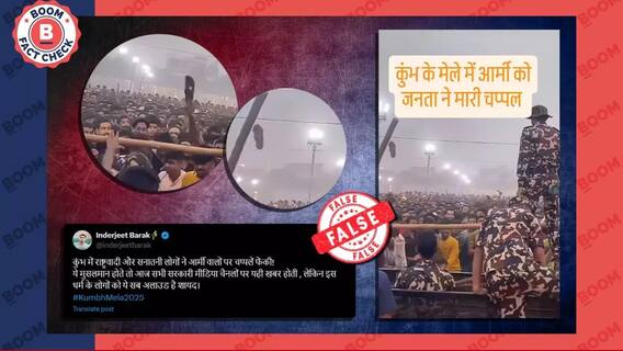 सोशल मीडिया पर महाकुंभ में जनता द्वारा सुरक्षाबलों को चप्पल मारने के दावे से एक वीडियो वायरल हो रहा है. बूम ने जांच की तो पाया कि यह वीडियो प्रयागराज महाकुंभ से जुड़ा नहीं है.