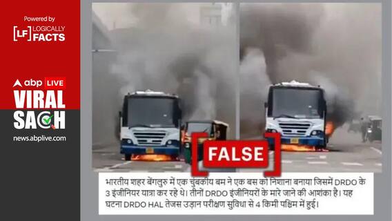 सोशल मीडिया पर एक वीडियो वायरल हो रहा है, जिसमें देखा जा सकता है कि एक बस सड़क के बीचों-बीच आग की लपटों में घिरी हुई है और उसमें से घना काला धुआँ निकल रहा है. इस वीडियो के साथ दावा किया जा रहा है कि कर्नाटक के बेंगलुरु में इस बस को "मैग्नेटिक बम" से निशाना बनाया गया था, जिसमें रक्षा अनुसंधान एवं विकास संगठन (डीआरडीओ) के तीन इंजीनियरों के मारे जाने की आशंका है.