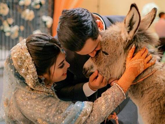 पाकिस्तान की एक फोटो सोशल मीडिया पर काफी वायरल हो रही है. इस फोटो में दिख रहा है कि एक दूल्हा और एक दुल्हन एक गधे के साथ दिखाई दे रहे हैं. फोटो में दिख रहा दूल्हा पाकिस्तान का फेमस यूट्यूबर अजलान शाह है और साथ में उनकी पत्नी वारिशा है. बताया जा रहा है कि अजलान और वारिशा के निकाह के बाद अजलान ने वारिशा को गिफ्ट के तौर पर गधा गिफ्ट किया है. आप भी सोच रहे होंगे कि आखिर इस सेलेब ने अपनी पत्नी को गधा गिफ्ट क्यों किया है. वैसे आपको बता दें कि भारत में जिस गधे की खास इज्जत नहीं होती, उस गधे की पाकिस्तान में काफी वैल्यू है.