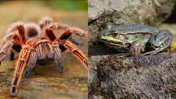 Tarantula And Frog Symbiotic Relationship: कुदरत ने दुनिया में कई अजीबोगरीब चीजें बनाई हैं. वहीं कई ऐसे भी खतरनाक जीव धरती पर मौजूद हैं, जो कि एक पल में किसी को खत्म करने की क्षमता रखते हैं. कई बार जिन जानवरों को हम छोटा समझते हैं वो बहुत खतरनाक भी होते हैं. मकड़ियां उनमें से एक हैं. अब आप सोच रहे होंगे कि आखिर नन्ही सी मकड़ी इंसान का क्या बिगाड़ लेगी. लेकिन ऐसा नहीं है, दुनिया में मकड़ियों की 50 हजार प्रजातियां पाई जाती हैं. उनमें से कई मकड़ियां तो ऐसी और इतनी बड़ी हैं, जो कि जहरीले सांपों को भी खा जाती हैं. वहीं कुछ के काटने से तो इंसान की मौत भी हो जाती है.