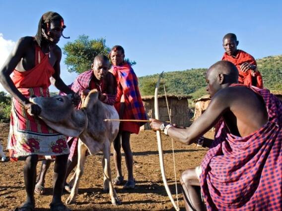 मसाई जनजाति के लोग अफ्रीका के केन्या में रहते हैं. जैसे ही आप इनके इलाके में जाएंगे आपको ये दूर से ही अपने लाल रंग के कपड़ों में दिख जाएंगे. गाय का खून पीने की इनकी परंपरा आज की नहीं बल्कि सदियों पुरानी है. इनकी परंपरा के मुताबिक ये खून इन्हें हर तरह की बीमारियों से बचाता है और इन्हें हर तरह के नशे से दूर रखता है. खास बात ये है कि ये लोग खून पीने के लिए गाय को जान से नहीं मारते हैं. बल्कि गाय के शरीर में एक छोटा सा छेद करके ये लोग खून पीने की परंपरा को निभाते हैं.