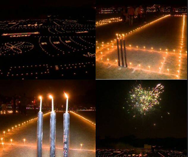 IN PICS: प्रयागराज में क्रिकेट के मैदान पर हुई ट्रैक पूजा, दीपों से जगमगा उठा सारा स्टेडियम