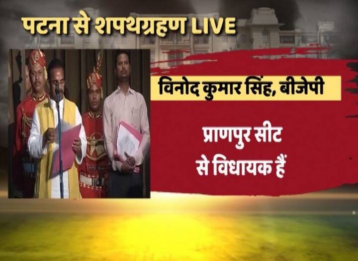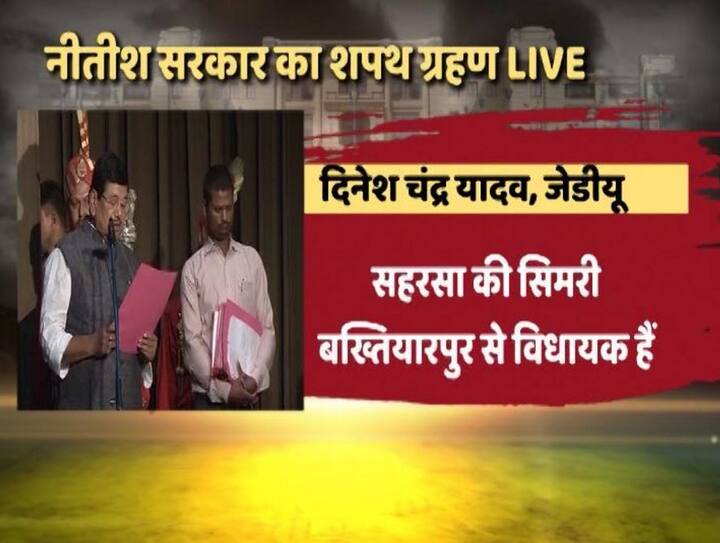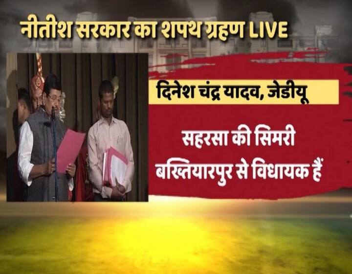 शपथग्रहण शुरू हुआ, सबसे पहले जेडीयू से विधायक विजेंद्र यादव ने शपथ ली. वित्त, वाणिज्य और बिजली मंत्री रह चुके हैं. बिहार जेडीयू के प्रदेश अध्यक्ष भी रह चुके हैं.
