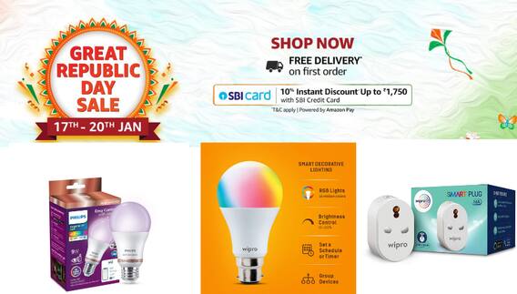 Amazon Great Republic Day Sale 2022: घर में कोई भी होम अप्लायंस चलाना हो तो उसको सिर्फ आवाज देकर ऑन कर सकते हैं. साथ ही स्मार्ट बल्ब भी सिर्फ वॉइस कमांड से ऑन ऑफ हो सकते हैं. एमेजॉन की सेल में Wipro Philips के स्मार्ट बल्ब और प्लग पर मिल रहा है 60% से ज्यादा का डिस्काउंट. साथ ही SBI कार्ड से पेमेंट करने पर 1500 रुपये तक का एक्स्ट्रा कैशबैक का ऑफर भी है.