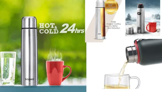 एमेजॉन का इन हाउस ब्रांड Solimo पर भी अच्छा खासा डिस्काउंट है. इसकी कीमत है 1350 रुपये लेकिन डील में मिल रहा है सिर्फ 729 रुपये में. ये एक लीटर का फ्लास्क है प्योर स्टील से बने इस फ्लास्क में भी फ्लिप कैप है. ये किसी भी हॉट या कोल्ड लिक्विड को 24 घंटे तक सेम टेम्परेसचर पर मेंटेन रखता है