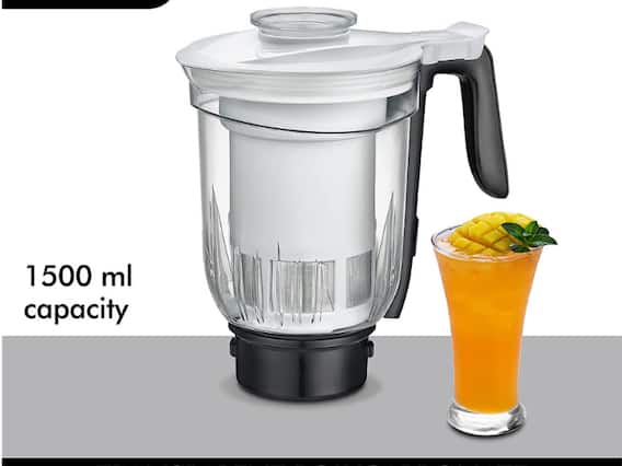 - एक मिक्सर ग्राइंडर के साथ एक 1.5 लीटर का जूसर जार भी दिया है जो लुक में काफी कॉम्पैक्ट है. ये नये स्टाइल के जूसर हैं जिसमें 2-3 ग्लास जूस आसानी से निकल सकता है और इसके लिये पुराने जूसर की तरह कई तरह के अटैचमेंट लगाने की जरूरत नहीं. इस जूसर में जार में एक स्ट्रेनर लगा हुआ है जिससे फ्रूट या सब्जियां डालकर सीधे जूसर निकाल सकते हैं.