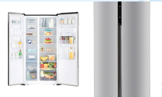 2-AmazonBasics 564 L Side-by-Side Door Refrigerator (Black Glass Door)