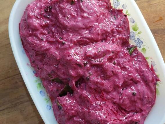 - उबली हुई चुकंदर को एक कटोरे में निकालें और इसमें दही मिलाएं