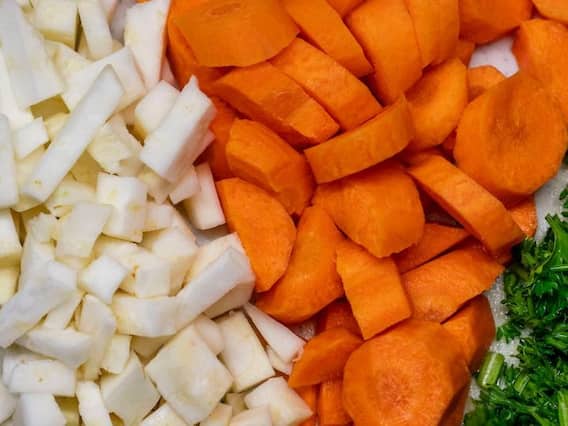 1. गाजर और मूली को पानी में 3-4 मिनट तक उबाल लें