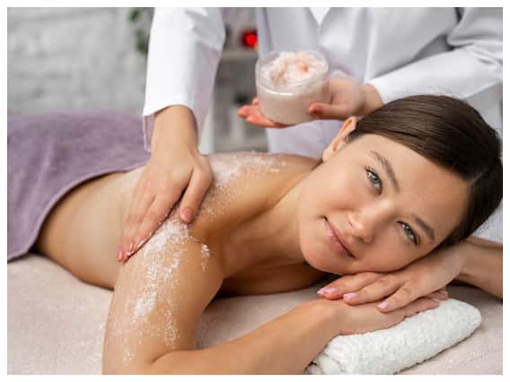 - अब इस स्क्रब को अपने पूरे शरीर पर लगाएं और उसे गोलाई के उपयोग से मालिश करें.