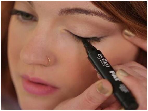 थिन आईलाइनर- अगर आपकी आंखें छोटी हैं तो आप इस तरीके का आईलाइनर लगा सकती हैं. इसके लिए आप अपनी फिंगर की मदद से आइब्रो और आई स्कोरस्ट्रीक्स कर लें. अब कलर्ड आई लाइनर लेकर उससे बेहद ही थिन लाइन बनाए. इस दौरान यह ध्यान रखें कि आई लाइनर वहीं पर खत्म हो जाए. जहां तक आपकी आंखें हैं. यह आपकी आंखों से बाहर नजर बिल्कुल भी नहीं आना चाहिए. जब आप एक आई लाइनर ब्रश पर ब्राउन शेड लें और उससे फिर आई लाइनर को हल्का सा स्मज कर ले.