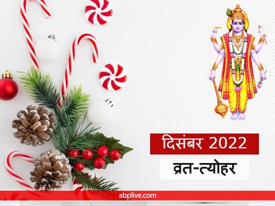 December 2022 Vrat-Tyohar List: साल 2022 का आखिरी माह दिसंबर धार्मिक दृष्टि से अति महत्वपूर्ण है. हिंदू कैलेंडर के अनुसार इस महीने में 9 दिसंबर 2022 से पौष माह की शुरुआत होगी. हर माह किसी देवी-देवता को समर्पित होता है.