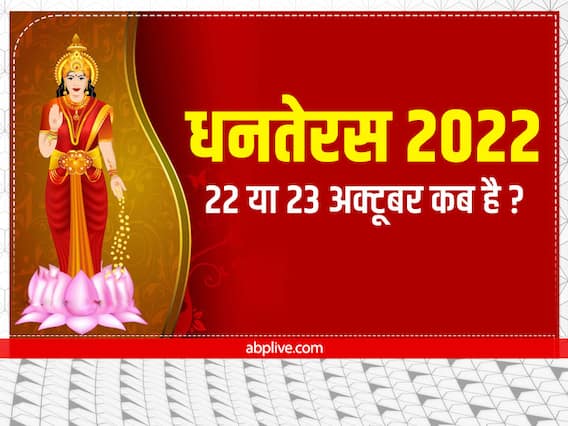 Dhanteras 2022 Date and Muhurat: दिवाली से पहले धनतेरस का त्योहार धूमधाम से मनाया जाता है. इसी दिन से पांच दिवसीय दीपावली पर्व की शुरुआत होती है. इस बार धनतेरस की डेट को लेकर लोगों में कंफ्यूजन बना है. 22 या 23 अक्टूबर, इन दोनों दिन में धनतेरस की सही तारीख को लेकर संशय की स्थिति बनी हुई है. आइए जानते हैं धनतेरस की सही तारीख, मुहूर्त.