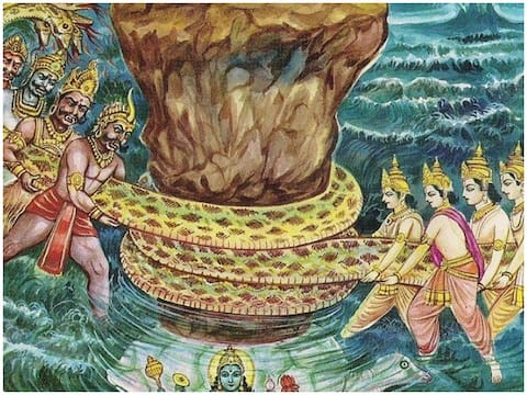 इसलिए हुआ समुद्र मंथन एक पौराणिक कथा के अनुसार बलि नाम का एक राजा था. जो दैत्यों में सबसे बलशाली था, इसीलिए इसे दैत्यराज कहा गया. बलि ने अपनी शक्ति के बल पर तीनों लोकों पर राज कर लिया. उधर दुर्वासा ऋषि के शाप के कारण देवताओं के राजा इंद्र कष्ट भोग रहे थे. बलि की लगातार बढ़ती शक्ति से देवगणों में हलचल मच गई और वे भयभीत हो गए. आने वाली विपत्ति से निपटने के लिए सभी देवताओं ने भगवान विष्णु के पास पहुंचकर प्राण रक्षा की गुहार लगाई. सभी देवताओं की बातों को सुनकर भगवान विष्णु ने समुद्र मंथन का सुझाव दिया. लेकिन इससे पहले देवताओं से संधि करने के लिए कहा. दैत्यों को समझाने के बाद वे राजी हो गए. इसके बाद देवताओं और दैत्यों के बीच समुद्र मंथन की प्रक्रिया आरंभ हुई.