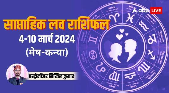 Saptahik Love Rashifal 2024: मार्च महीने के पहले हफ्ते यानी 4 से 10 मार्च तक मेष से कन्या राशियों की लव लाइफ कैसी रहने वाली है. आइये ज्योतिष से जानते हैं मार्च के इस नए सप्ताह यानी 4 से 10 मार्च 2024 का समय मेष, वृषभ, मिथुन, कर्क, सिंह और कन्या राशि वाले लोगों के प्रेमी जीवन के लिए कैसा रहने वाला है.