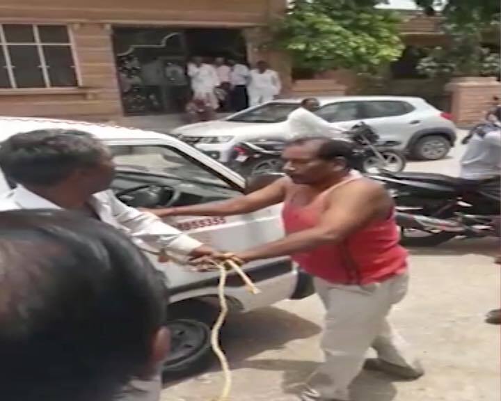 एक युवक ने शख्स को एंबुलेंस वैन में बाँधकर पुरे गांव में घुमाया