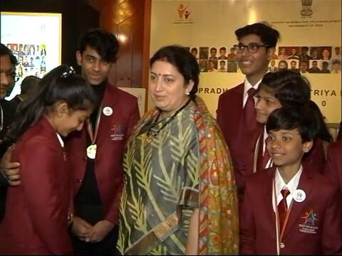 नई दिल्ली: प्रधानमंत्री राष्ट्रीय बाल पुरस्कार 2020 में इस बार देश के 49 बच्चों को चयनित किया गया है. जिन्हें छह अलग-अलग श्रेणियों में सम्मान प्रदान किया गया. सम्मान पाने वाले बच्चों के लिए महिला एवं बाल विकास मंत्रालय ने केंद्रीय मंत्री स्मृति ईरानी के साथ एक इंटरेक्शन प्रोग्राम आयोजित किया. होटल अशोक में आयोजित किए गए कार्यक्रम में स्मृति ईरानी ने सभी बच्चों के साथ मुलाकात की.