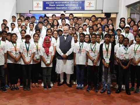 बैंगलुरू: कर्नाटक की राजधानी बैंगलुरू में इसरो के केंद्र में चंद्रयान-2 की लैंडिंग देखने पहुंचे छात्रों को प्रधानमंत्री नरेंद्र मोदी ने सफलता के टिप्स दिए. पीएम मोदी ने छात्रों से कहा है कि हमेशा ऊंचा सोचिए. निराशा को कभी अपनी राम में न आने दें. इसरो के केंद्र में 60 बच्चे चंद्रयान 2 की लैंडिंग देखने पहुंचे थे. इन बच्चों ने पिछले महीने एक ऑनलाइन स्पेस क्विज में भाग लिया था.