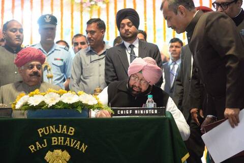 नई दिल्ली: मोदी लहर के बीच पंजाब में कांग्रेस की जीत का परचम लहराने वाले कैप्टन अमरिंदर सिंह ने आज मुख्यमंत्री पद की शपथ ले ली है. दस साल बाद पंजाब में कांग्रेस की वापसी हुई है और अमरिंदर पंजाब के 26वें मुख्यमंत्री बन गए हैं. यह दूसरी बार है जब अमरिंदर सिंह ने मुख्यमंत्री के तौर पर शपथ ली. इससे पहले वह 2002 से 2007 तक राज्य के मुख्यमंत्री रहे. अमरिंदर सिंह के साथ आज नौ कैबिनेट मंत्रियों ने शपथ ली. जानें अमरिंदर सिंह की कैबिनेट में किसे मिला कौन सा मंत्रालय ?