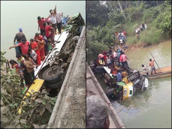 Andhra Pradesh Bus Accident News: आंध्र प्रदेश के पश्चिमी गोदावरी जिले में एक बस के पुल से नहर में गिरने से 8 लोगों की मौत हो गई. हादसा तब हुआ जब बस जंगारेड्डीगुडेम मंडल के जल्लेरु इलाके में पुल के ऊपर से गुज़र रही थी. हादसे के समय बस में करीब 47 लोग सवार थे, जिनमें से आठ लोगों की जान चली गई. बताया जा रहा है कि इस हादसे में कई लोग घायल हैं.
