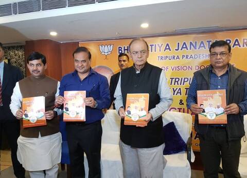 अगरतला: बीजेपी नेता और केंद्रीय मंत्री अरूण जेटली ने त्रिपुरा विधानसभा चुनाव के लिए पार्टी का घोषणापत्र जारी कर दिया है. इसमें वादा किया गया है कि यदि बीजेपी त्रिपुरा में सत्ता में आई तो राज्य में विशेष आर्थिक क्षेत्र (एसईजेड) की स्थापना के साथ ही युवाओं को मुफ्त स्मार्टफोन दिया जाएगा.