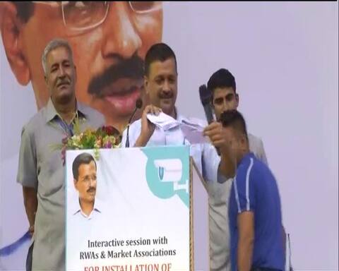 नई दिल्ली: दिल्ली में सीसीटीवी लगाए जाने के मुद्दे पर मुख्यमंत्री अरविंद केजरीवाल ने रविवार को इंदिरा गांधी इनडोर स्टेडियम में बैठक बुलाई. आरडब्ल्यूए और मार्केट असोसिएशन की बैठक बुलाई थी. इस बैठक में अरविंद केजरीवाल ने सीसीटीवी के लिए पुलिस की इजाजत के मुद्दे पर एलजी के बनाए पैनल की रिपोर्ट मंच पर फाड़ दी. केजरीवाल का आरोप है कि पैनल की इस रिपोर्ट से लाइसेंस राज को बढ़ावा मिलेगा.