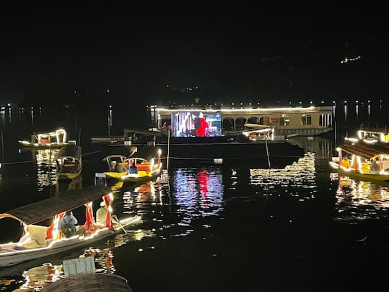 Jammu Kashmir News: श्रीनगर में एशिया का पहला "फ्लोटिंग सिनेमा" शुरू किया गया है. आज़ादी के 75 साल के अवसर पर मनाए जा रहे आईकॉनिक फेस्टिवल (Iconic Festival) के आखिरी दिन शुक्रवार को श्रीनगर की डल झील में एक रंगारंग कार्यक्रम के दौरान इस सिनेमा हॉल का उद्घाटन किया गया. डल झील के बीचो बीच बने नेहरू पार्क में सिनेमा हॉल शुरू किये जाने से पहले एक भव्य शिकारा महोत्सव का भी आयोजन हुआ. इस मौके पर कलाकारों ने अपने धरोहरों को दर्शाया. कर्णप्रिय संगीत से सबको मंत्रमुग्ध कर दिया. जिस कार्यक्रम ने सब का दिल जीत लिया वो डल झील के ऊपर होने वाला लेज़र शो रहा. कई प्रकार के रंगों वाली लाइटों से सजी शिकारा और लेजर शो से डल झील रोशन हो उठी.