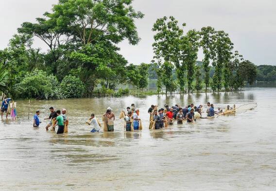 Assam Floods: असम (Assam) में भारी बारिश के चलते बाढ़ (Flood) के हालात बने हुए हैं. ताजा जानकारी के मुताबिक, लगातार हो रही बारिश (Rain) और बाढ़ के चलते अब तक 8 लोगों की जान चली गई जबकि 42 लाख लोग बेघर हो गए हैं. बताया जा रहा हालात इतने बदतर हो गए हैं कि लोगों का जन जीवन अस्त-व्यस्त हो गया है. सड़के पानी में डूब गई हैं जिसके चलते लोग एक जगह से दूसरी जगह तक नहीं पहुंच पा रहे हैं.