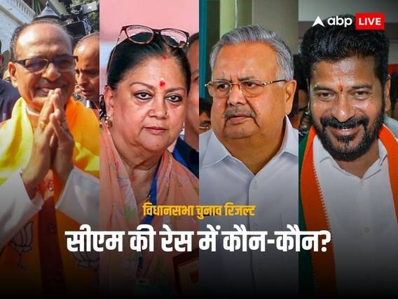 Assembly Elections 2023 Results: चार राज्यों के विधानसभा चुनाव की मतगणना में तीन में बीजेपी और एक में कांग्रेस की पूर्ण बहुमत से सरकार बनने जा रही है. मध्य प्रदेश में बीजेपी की बंपर जीत हुई है. राजस्थान और छत्तीसगढ़ में भी इस बार कमल खिल रहा है. वहीं, तेलंगाना में पिछले करीब 10 वर्षों से चली आ रही केसीआर की सरकार को झटका लगा है. तेलंगाना में कांग्रेस की जीत हुई है. इन चारों राज्यों के लिए न तो बीजेपी और न ही कांग्रेस ने अपने-अपने सीएम चेहरों की घोषणा की थी. अब सवाल है कि इनमें मुख्यमंत्री कौन बनेगा.