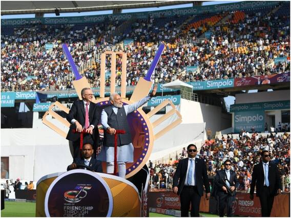1. ऑस्ट्रेलियाई पीएम एंथनी अल्बानीज और पीएम मोदी ने भारत और ऑस्ट्रेलिया के क्रिकेट टेस्ट मैच की शुरुआत से पहले दोनों देशों के बीच 75 साल की दोस्ती के अवसर पर मैदान का ‘लैप ऑफ ऑनर’ लगाया. टेस्ट मैच देखने के लिए दुनिया के सबसे बड़े क्रिकेट स्टेडियम में पहुंचे हजारों क्रिकेट प्रेमियों ने गोल्फ कार्ट पर सवार दोनों नेताओं का तालियां बजाकर स्वागत किया.