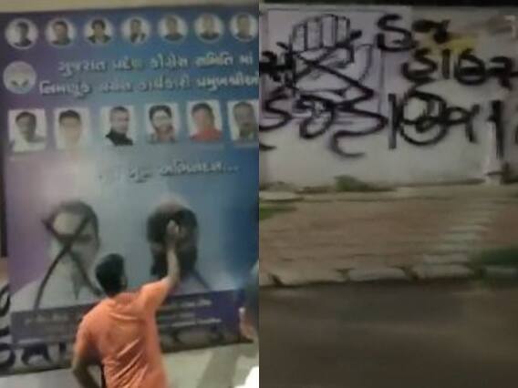 Bajrang Dal on Jagdish Thakor: गुजरात के अहमदाबाद में कांग्रेस ऑफिस (Congress Office) की दीवार पर लगे पोस्टर्स पर बजरंग दल (Bajrang Dal) ने काली स्याही पोत दी है. इसके साथ ही बजरंग दल ने कांग्रेस दफ्तर की दीवार पर 'हज हाउस' (Haj House) लिख दिया है. बजरंग दल ने गुजरात कांग्रेस के प्रदेश अध्यक्ष जगदीश ठाकोर (Jagdish Thakor) की ओर से अल्पसंख्यकों पर दिए बयान का विरोध किया है. राज्य कांग्रेस अध्यक्ष जगदीश ठाकोर ने हाल ही में अल्पसंख्यक समुदायों के लिए एक चुनावी घोषणा पत्र का आह्वान करते हुए कहा था कि कांग्रेस ने हमेशा अल्पसंख्यकों का समर्थन किया है और अपनी विचारधारा को कभी नहीं बदला, चाहे वह सत्ता में हो या नहीं.