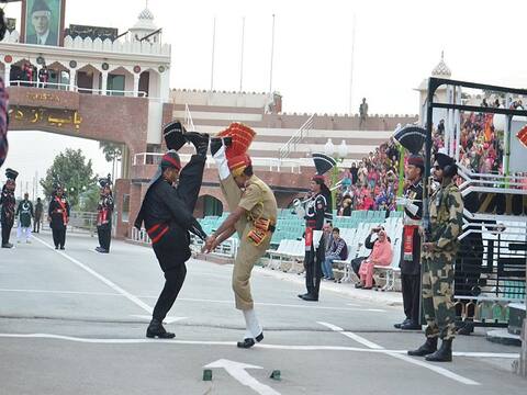 वाघा, अमृतसर से 32 किमी और लाहौर से 22 किमी दूरी पर है. इस दौरान दोनों देशों के गार्ड नाक से नाक की बराबरी तक आते हैं. जवान मार्च के दौरान अपने पैर जितना ऊंचा ले जाते हैं, उसे उतना बेहतर माना जाता है.