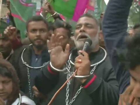 नई दिल्ली: देश के अलग-अलग हिस्सों में नागरिकता संशोधन कानून के खिलाफ प्रदर्शन हो रहा है. बिहार की राजधानी पटना में जन अधिकार पार्टी के नेता पप्पू यादव ने बेड़ियां पहनकर नागरिकता संशोधन अधिनियम के खिलाफ विरोध प्रदर्शन किया.