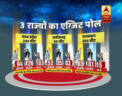 यहां आपको बता दें कि तीन हिंदी भाषी प्रदेशों मध्य प्रदेश, छत्तीसगढ़ और राजस्थान में हुए विधानसभा चुनाव में बीजेपी को झटका लगता दिख रहा है. एबीपी न्यूज़ के एग्जिट पोल के मुताबिक, मध्य प्रदेश और राजस्थान की सत्ता बीजेपी के हाथों से निकल सकती है. कांग्रेस एग्जिट पोल के नतीजों से गदगद है, तो वहीं सत्तारूढ़ बीजेपी ने इसे खारिज करते हुए कहा है कि 11 दिसंबर के एक्जैक्ट नतीजों का इंतजार कीजिए.